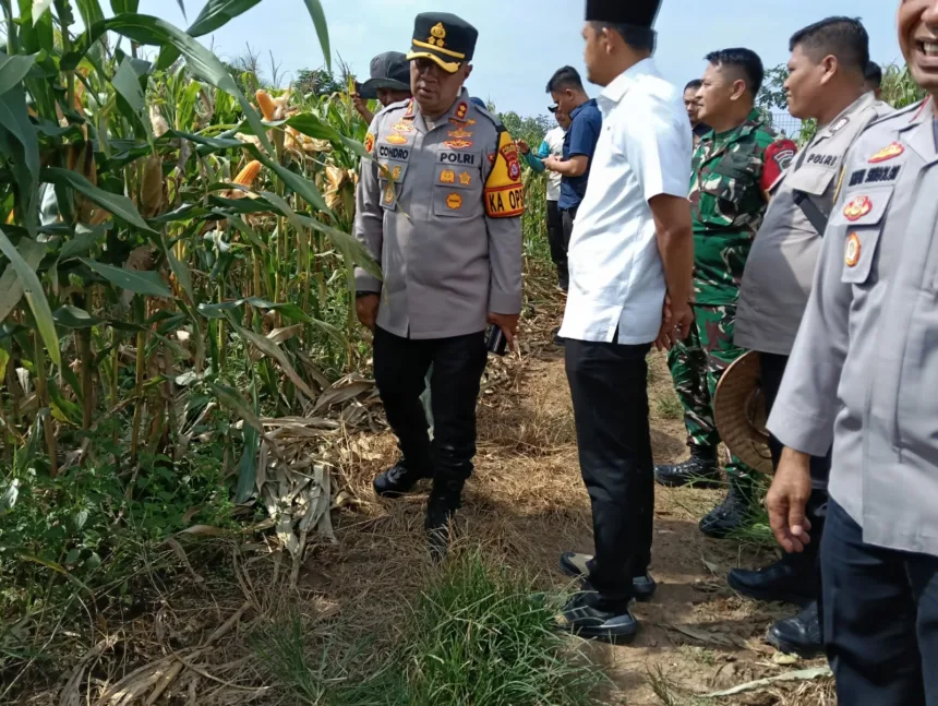 SERANG, EKBISPAR.COM – Kapolres Serang AKBP Condro Sasongko didampingi Kapolsek Kopo Iptu Aripin Simbolon mengecek lokasi yang akan dijadikan panen panen raya jagung di Kampung Pasir Situ, Desa Mekarbaru, Kecamatan Kopo, Kabupaten Serang, Selasa 11 Februari 2025.