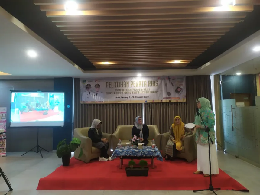 SERANG, EKBISPAR.COM – Sebanyak 60 penata rias dari Kabupaten/ Kota mengikuti pelatihan tata rias yang difasilitasi Dinas Pariwisata Provinsi Banten di Hotel Lynn Kota Serang, Kamis (9/10/2025).