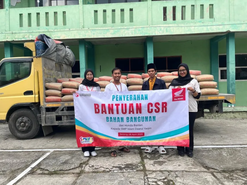 EKBISPAR.COM — Sebagai bentuk kepedulian terhadap dunia pendidikan, PT Mitra Sendang Kemakmuran melalui program Corporate Social Responsibility (CSR) “Sinergi Bagi Negeri” memberikan bantuan sebanyak 100 sak semen untuk mendukung pembangunan lapangan di SMP Islam Daarul Yaqiin, Cipocok Jaya, Kota Serang. Bantuan ini diserahkan secara simbolis dalam sebuah seremonial yang dihadiri oleh perwakilan Honda Banten dan pihak sekolah pada Selasa, (8/4/25).