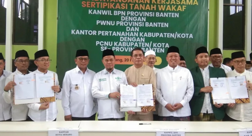 EKBISPAR.COM — Menteri Agraria dan Tata Ruang (ATR), Nusron Wahid, menegaskan pentingnya percepatan sertifikasi tanah wakaf guna memberikan kepastian hukum serta mencegah potensi konflik di kemudian hari. Acara tersebut juga turut dihadiri Gubernur Banten Andra Soni sebagai bentuk dukungan percepatan sertifikasi tanah wakaf dan upaya pemerintah dalam memperkuat kepastian hukum atas aset wakaf milik umat Islam. Acara tersebut diselenggarakan di MUI Provinsi Banten, Jum’at (20/2/2026).