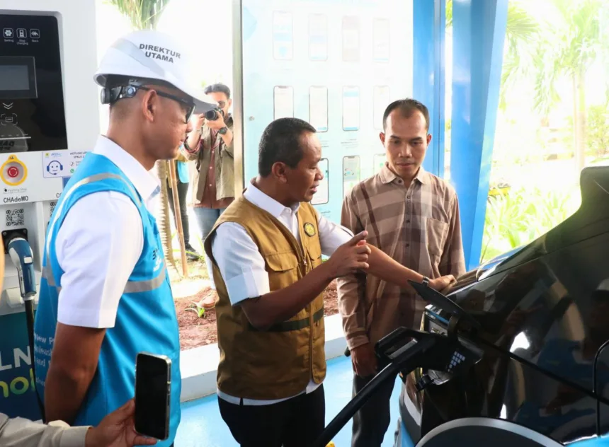 EKBISPAR.COM — PT PLN (Persero) bersama Kementerian Energi dan Sumber Daya Mineral Republik Indonesia (ESDM RI) memastikan kesiapan seluruh infrastruktur Stasiun Pengisian Kendaraan Listrik Umum (SPKLU) untuk mendukung kenyamanan pemudik pengguna kendaraan listrik selama periode Ramadan dan Idul Fitri (RAFI) 1446 Hijriah. Hal ini ditegaskan melalui kunjungan kerja Menteri ESDM RI, Bahlil Lahadalia beserta jajaran Kementerian ESDM RI yang didampingi oleh Direktur Utama PLN, Darmawan Prasodjo, hingga General Manager PLN Unit Induk Distribusi (UID) Banten, Moch. Andy Adchaminoerdin (Andy Acha) ke SPKLU Pelabuhan Merak Banten di Cilegon pada Kamis (13/3).