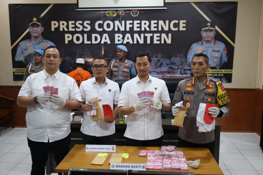 “Berdasarkan Informasi dari masyarakat beserta Tim Resmob Ditreskrimum Polda Banten lansgung mendatangi lokasi dan menemukan orang yang diduga menyimpanan uang palsu berjenis mata uang rupiah dan mata uang asing tersebut. Kemudian melakukan pemeriksaan dan terhadap pelaku diamankan di kantor Ditreskrimum Polda Banten berikut dengan barang bukti untuk dilakukanpemeriksaan lebih lanjut dan proses hukum yang berlaku,” ucapnya.