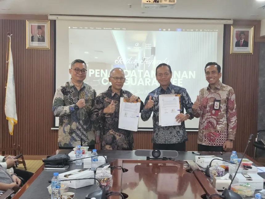 EKBISPAR.COM — Dalam kegiatan Rapat Koordinasi ASPENDA Tahun 2025 yang diadakan di Ruang Rapat PT Jamkrida Jakarta (Perseroda) Kamis 26 Juni 2025, PT Jamkrida Banten bersama dengan enam Perusahaan Penjaminan Kredit Daerah lainnya melakukan penandatanganan kerjasama penjaminan bersama dengan PT Jamkrida Jakarta.