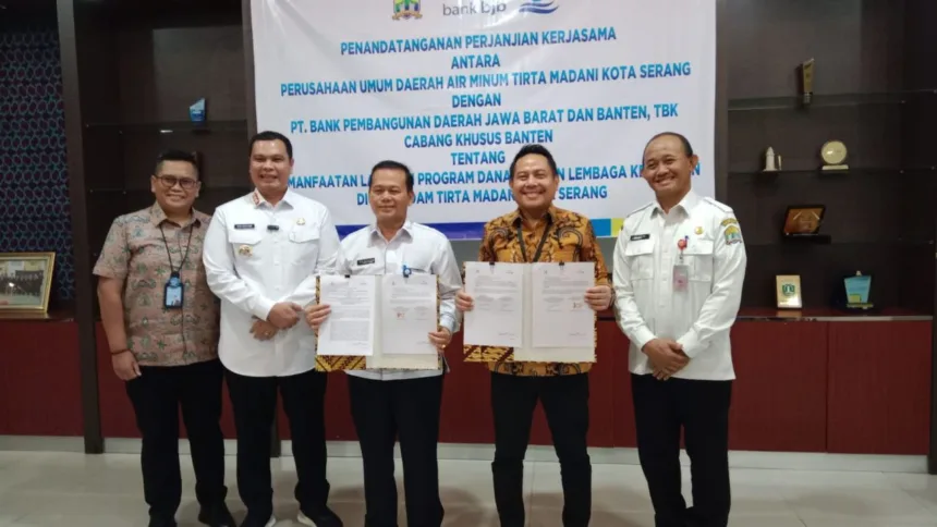 EKBISPAR.COM — Bank bjb Kantor Cabang Khusus Banten melakukan penandatanganan kerja sama dengan Perumda Tirta Madani Kota Serang terkait Dana Pensiun Lembaga Keuangan (DPLK). Hal itu disampaikan Pemimpin Bank bjb KCK Banten Ujang Aep Saefullah, Rabu (30/4/2025).